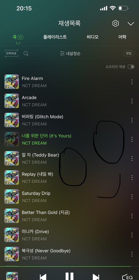 얘드라 마크 무슨 음싸에서 듣는 거야?