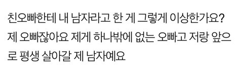 친오빠한테 내 남자라고 한 게 그렇게 이상한가요? 제 오빠잖아요 제게 하나밖에 없는 오빠고 저랑 앞으로 평생 살아갈 제 남자예요