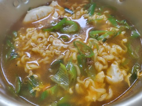 라면 계란 파 청양고추