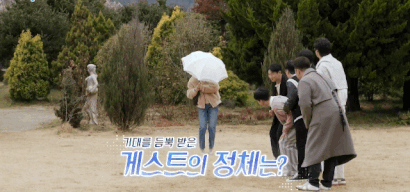 양산으로 얼굴을 가린 게스트는....