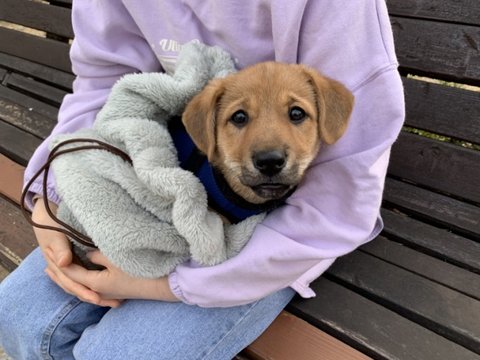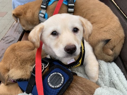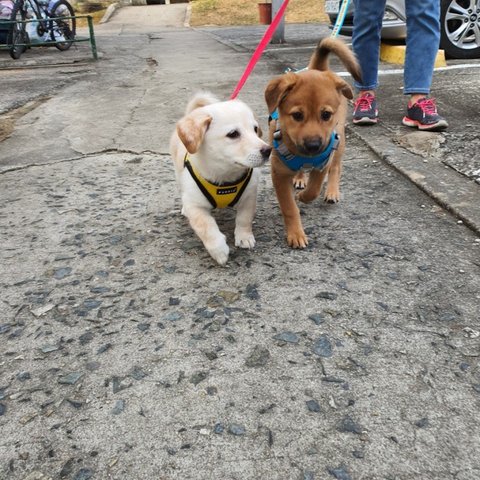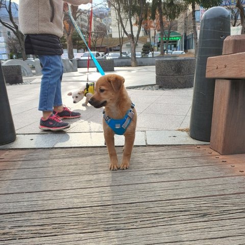 노랑 - 여아, 황구, 다리가 길어요. 털이 부들부들해요. 잘 놀아요. 낯을 가려요.