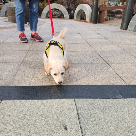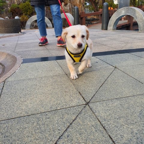 요즘 산책을 나가면 사람들이 엄청 예뻐해주시는데 다들 노랑이 털을 만져보곤 깜놀 !!