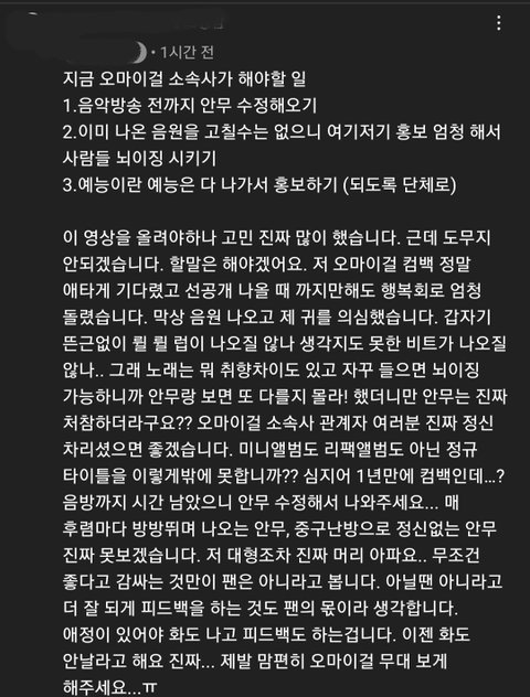 옴걸 팬튜브가 욕먹을각오하고 영상올릴정도면