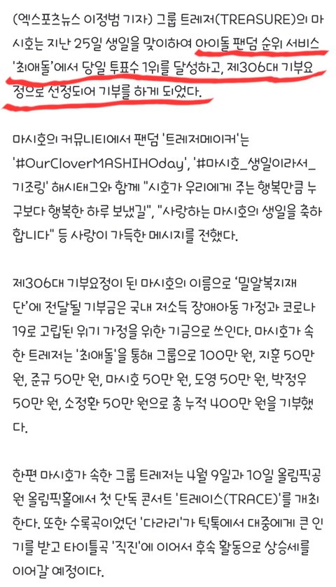 최애돌)마시호 생일기념 팬투표1위 기부요정등극