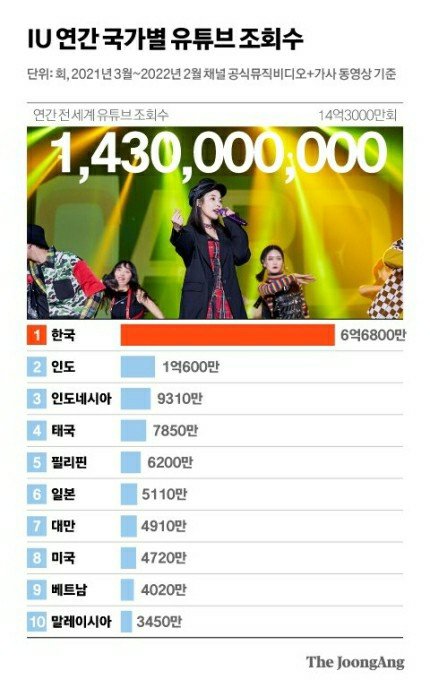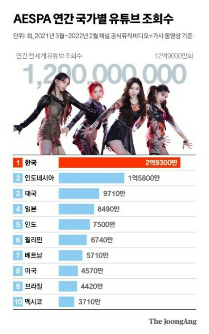 아이유는 뭐 말 안해도 이미 알고 에스파 ㄹㅇ 대중성 잘 잡았구나 한국 조회수 개많네