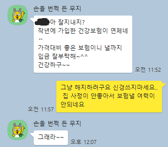 결국에 저도 있던 보험 깨게 되었는데 오늘 저렇게 카톡이 왔어요.
