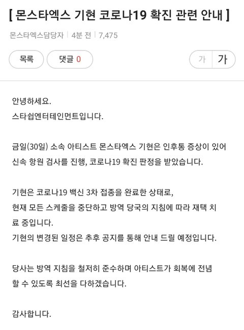 기현이 확진 ㅠㅠ