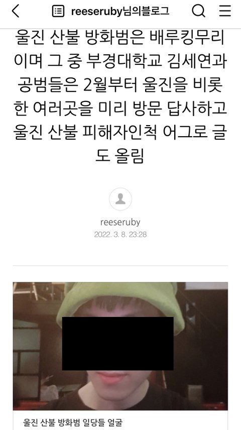 적극적으로 방화범 찾아낸 강릉 산불과 달리 울진산불 방화범을 강릉때처럼 파헤치지 않는 이유는 사전투표때부터 시작된 부정선거를 덮기위한 화제 전환용으로 일부러 사람을 시켜서 울진에 방화 산불을 낸것이기 때문으로 계속된 저격과 얼굴박제에 스트레스 받던 울진산불 방화범들은 자신들이 한달전부터 미리 울진을 사전답사 한 뒤 방화를 한 사실을 인정 자백도 함