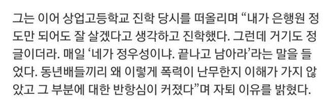 정우성은 동급생들끼리 서열나누고 하는게 너무 한심해 보였다고 함