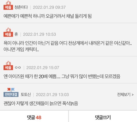 ㄹㅇ 진짜 씹스럽게 까임 ㅋㅋㅋㅋㅋ 이쁘다는 글만 올려도 베플 이따구