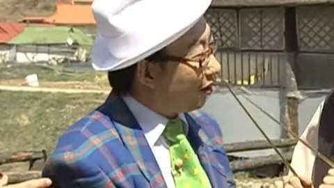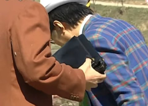 노홍철은 수맥 탐지봉 들고 있음