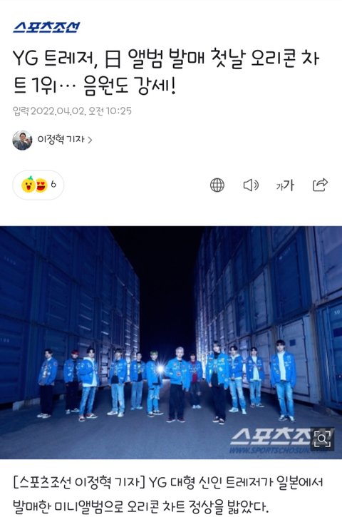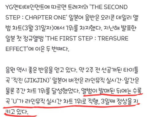 트레저 일본 앨범발매 첫날 오리콘차트 1위