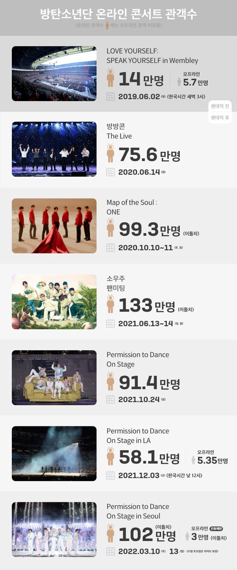 방탄소년단 온라인 콘서트 온콘 관객수 모음