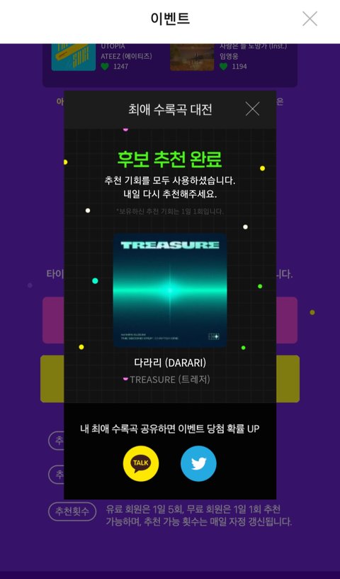 이용권 있는 사람은 하루 5번, 계정만 있어도 하루에 1번 투표가능하니까 많이많이 해줬음 좋겠엉
