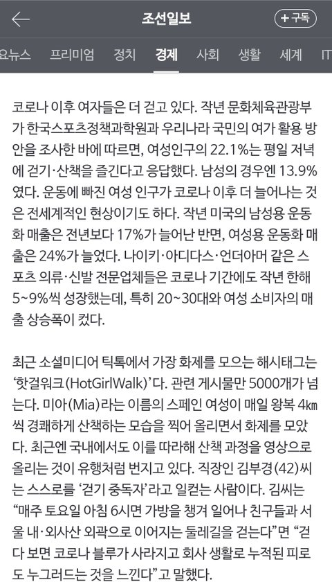 기사 원문은 최근에 운동에 관심가지는 여자들이 많다는 내용이고, <<운동하느라 취직 안 하는 것>>도 아니고 점심시간에 운동하거나, 아님 퇴근하거나 주말에 운동한다는 내용임.