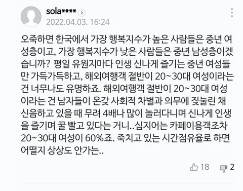 걍 기사 제대로 읽지도 않고 무지성으로 여혐하는게 우리나라 한남들임