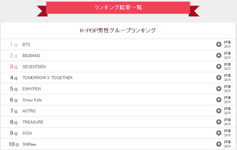 2022년 일본 10대 여학생들 선호 케이팝 남그룹 TOP10