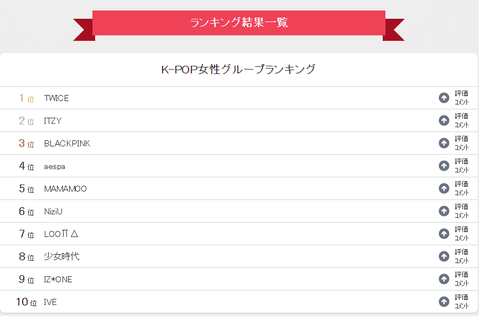 2022년 일본 10대 남학생들 선호 케이팝 여그룹 TOP10