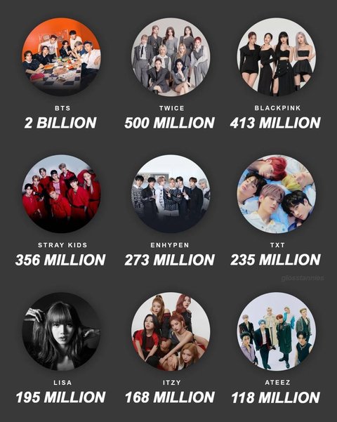 1:방탄소년단 2: 트와이스 3: 블랙핑크 4: 스트레이키즈 5: 엔하이픈 6: 투모로우바이투게더 7: 리사 8: 있지 9: 에이티즈