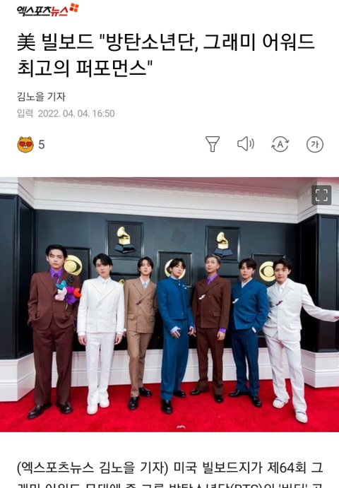 기립받을만하지..라이브하면서 이런 퍼포 아무나 못하지 솔직히 그래미 너무 지루했는데 방탄무대만 기억에 남더라