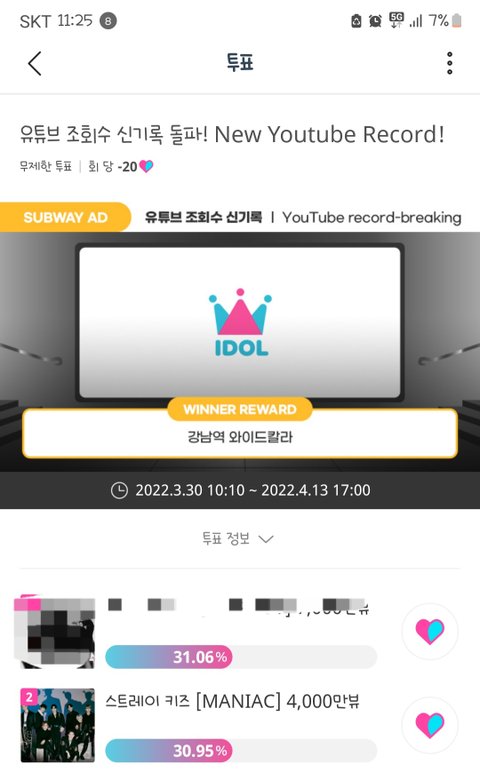 차이가 너무 아깝다 투표해서 격차 좀 벌리자~