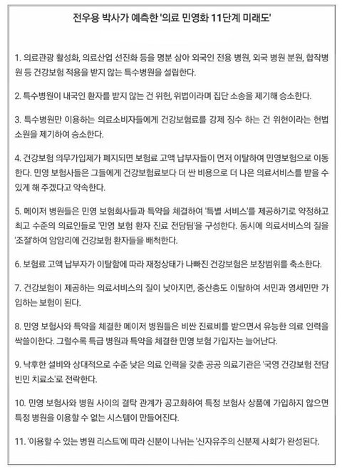 의료민영화가 시작되면 가장 타격입는 건 서민입니다