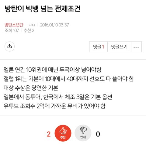 빅뱅이 방탄을 넘으려면 어떻게 해야하는지 알려주면 좋겠다
