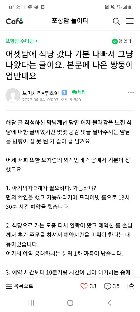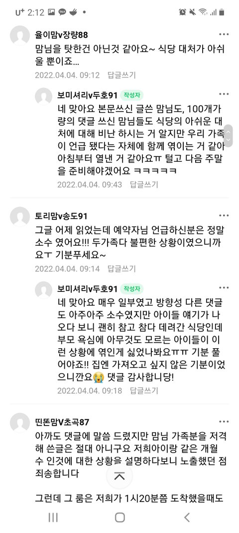 이글은 문제의 맘충년이 아니라, 예약손님임.