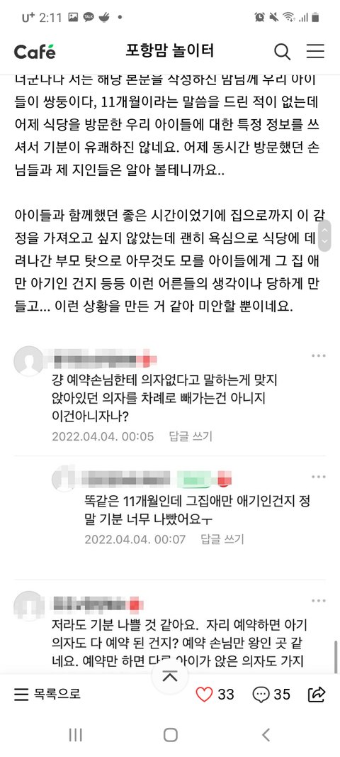 코시국에 애기 끌고다니면서 아기의자 찾는것도 쉽지않을건데 왜이럼...??
