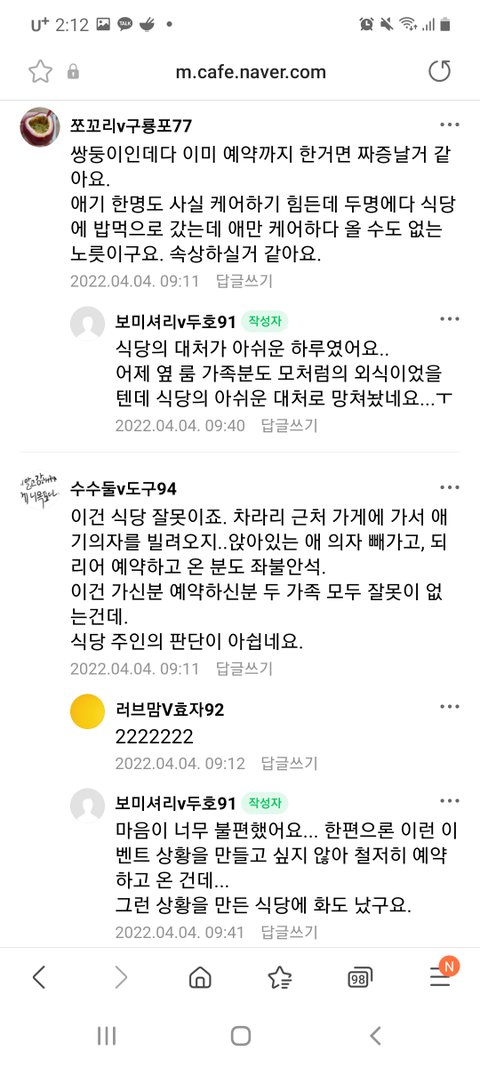 맘충년은 예약안하고와서 뺏겼다고 기분나쁘다고 글싸지른거고.