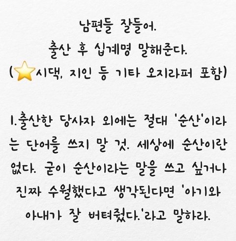 출산후 남편 십계명(시댁, 지인 등 기타오지라퍼 포함)