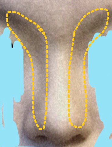 난 미간이 사알짝 넓은편이라 눈앞머리 쪽 콧대에 음영을 주면 미간도 좁아보이고 콧대도 좀더 확실해 지는것 같아