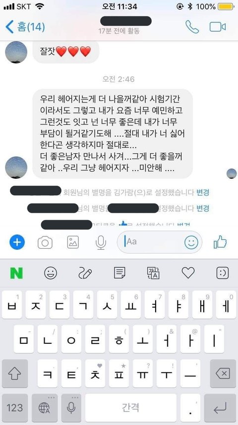 개웃기다 원래 페메 애칭 자기여보♡ 이런 거 였는데 헤어지자 하고 이름 석자로 바꾼 건가?