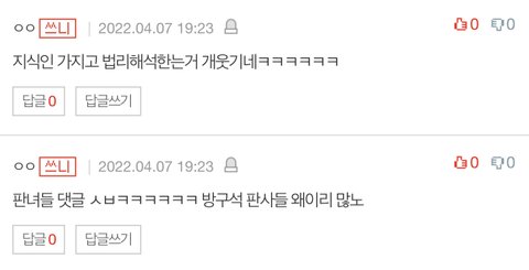 피뎊 따서 회사에 메일 넣는다고 그게 고소가 될 거라고 믿는 거야? 미안한데 오히려 고소하면 본인 아티스트 ╋ 팀 이미지만 더 바닥 치는 길임. 그리고 판에 올라 온 글이면 사진 보니까 가관이더만 ㅋㅋㅋㅋ 걔가 고소한대? 뭐로 할 건데? 명예훼손? 그 누구도 선 넘는 비판 한 사람 없음