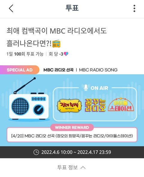엠비씨 라디오 아이돌챔프 2위야ㅠ