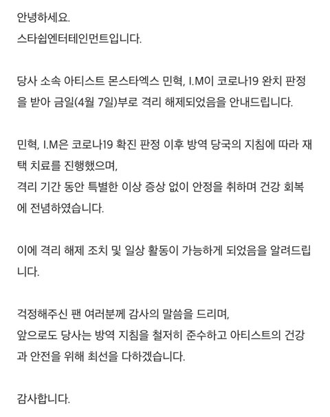 민혁 창균이 격리해제!!