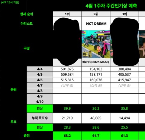 정확한건 아닌데 음원 차이가 커서 투표 압도적으로 높아야함