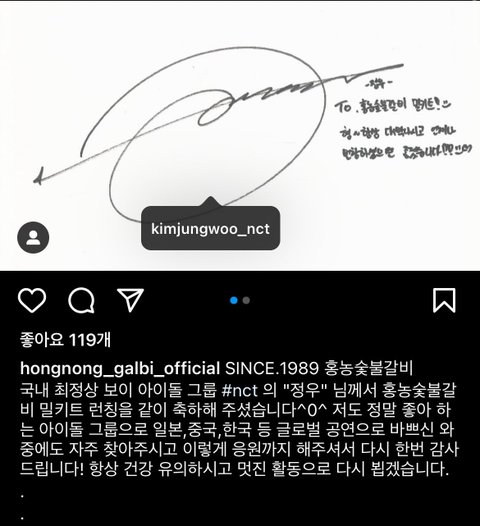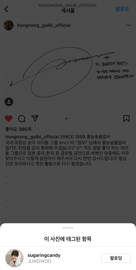 갈비집 공계에서 정우 인스타 태그를,,,