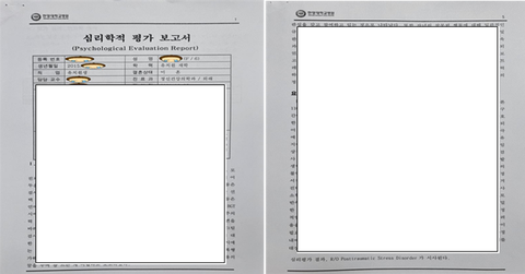 *한 대학병원에서 실시된 심리평가 결과보고서(만취한 20대 여성이 40대 가장을 폭행하였던 사건. 그걸 지켜본 6세 딸아이의 심리평가 결과, 출처: https://n.news.naver.com/article/016/0001917381). 검사 실시자가 여기엔 명시되어 있지 않지만 일반적으로 정신건강임상심리사/임상심리전문가 혹은 이로부터 지도감독을 받고 있는 수련생(임상심리레지던트)이 심리검사를 실시하고 결과를 해석하여 보고서를 작성하는 편임.
