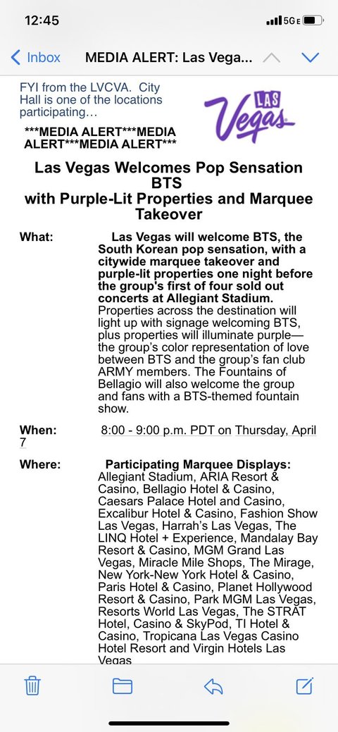 보라색으로 조명 켤거래ㅁㅊ 라스베가스 시에서 오피셜로 진행하는 이벤튼가봄 미국 개부러워