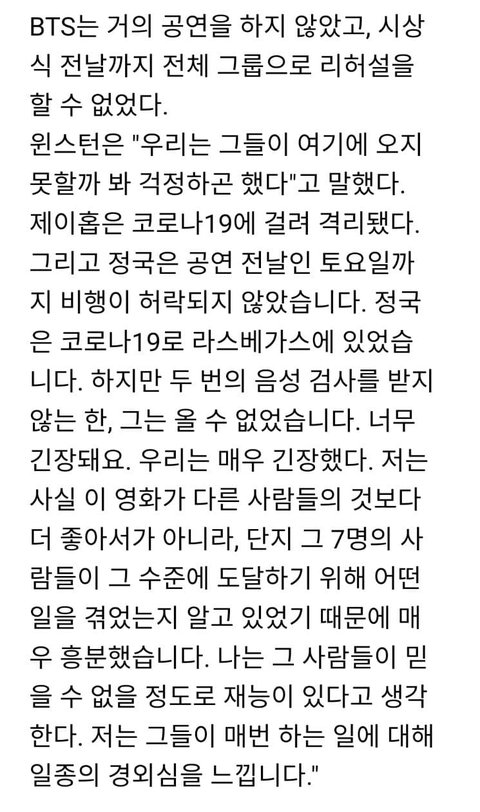 공연 못할까봐 ㅈㄴ 쫄렸을듯 영화같다는거 이해가 감