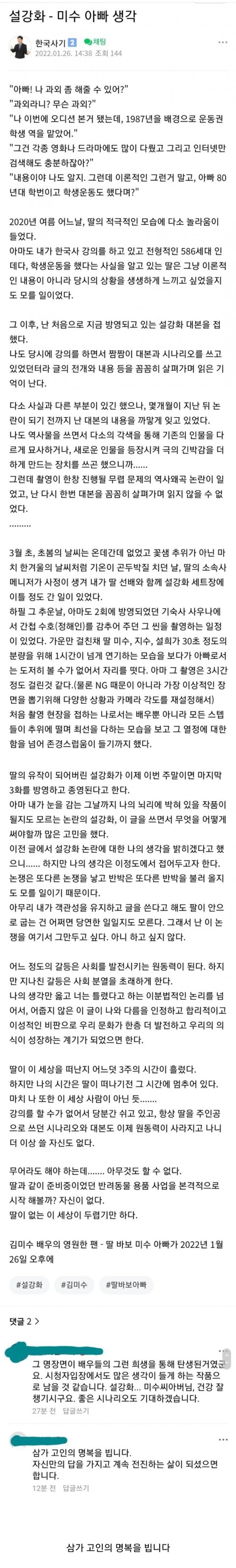 여정민역 故김미수배우님의 아버지의 글
