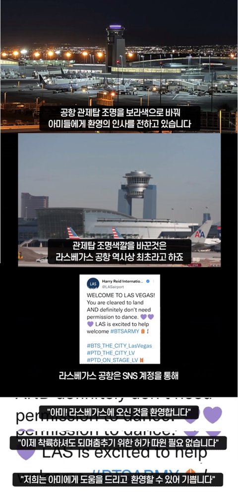 미국의 한 도시가 스타디움부터 공항 관제탑, 시청, 호텔, 전광판 등 전부 보라색ㅋㅋㅋㅋ 콘서트보러 간 팬들이 묵는 숙소도, 식당도 전부 보라빛이고 라스베가스 공계닉도 보라해가스임ㅋㅋㅋㅋㅋㅋㅋ