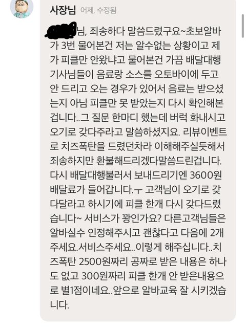 나는 사장이 죄송하다 어떻게해드릴까 한마디라도 했으면