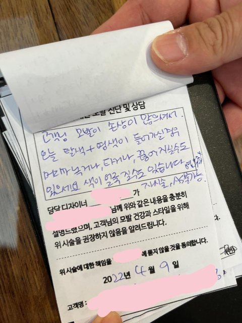 더 염색을 할 수가 없다니까 알겠다고 하셨어요.