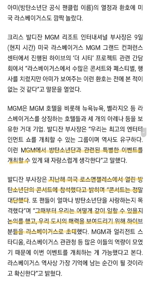라스베가스 MGM에서 방탄 LA콘보고 작정하고 라베로 모셔가서 자본과 라베 관광청 등 라스베가스 시 자체가 뒷받침해줌
