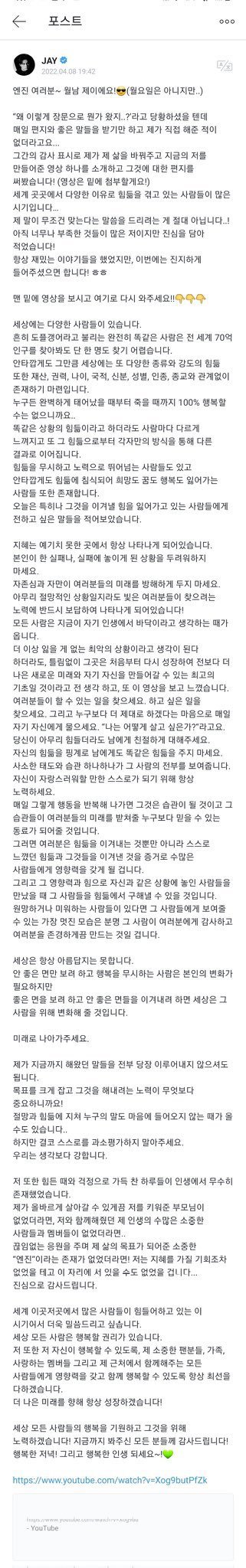 그리고 팬들을 위해서 저런 장문을 고민하면서 썼다는게 진짜.. 감동임