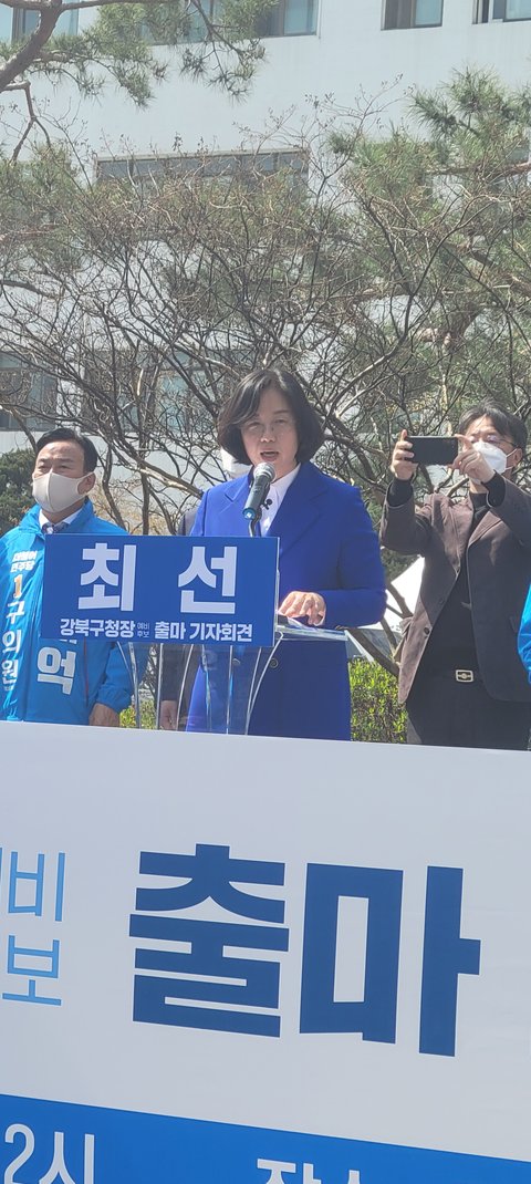 (사진2,3 설명) 최선 강북구청장 예비후보 출마 기자회견 일시 : 2022년 4월 9일(토) 오후2시 장소 : 강북구청앞 <사진 촬영 = 최대우>