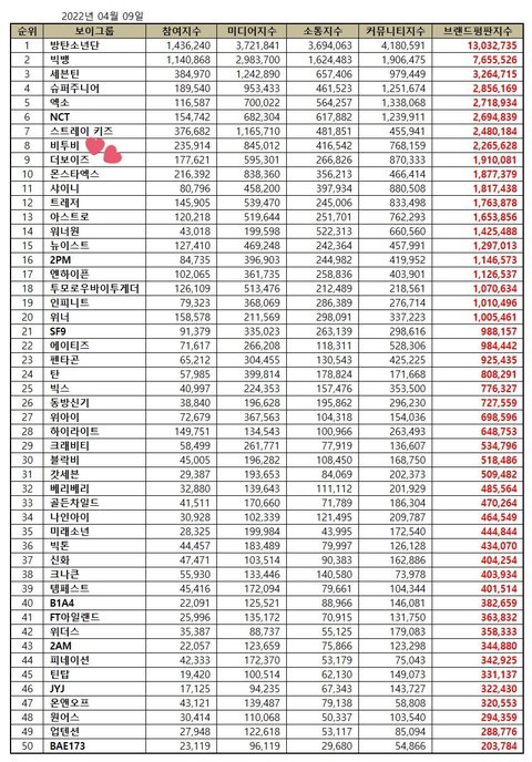 2022년 4월 보이그룹 브랜드 평판