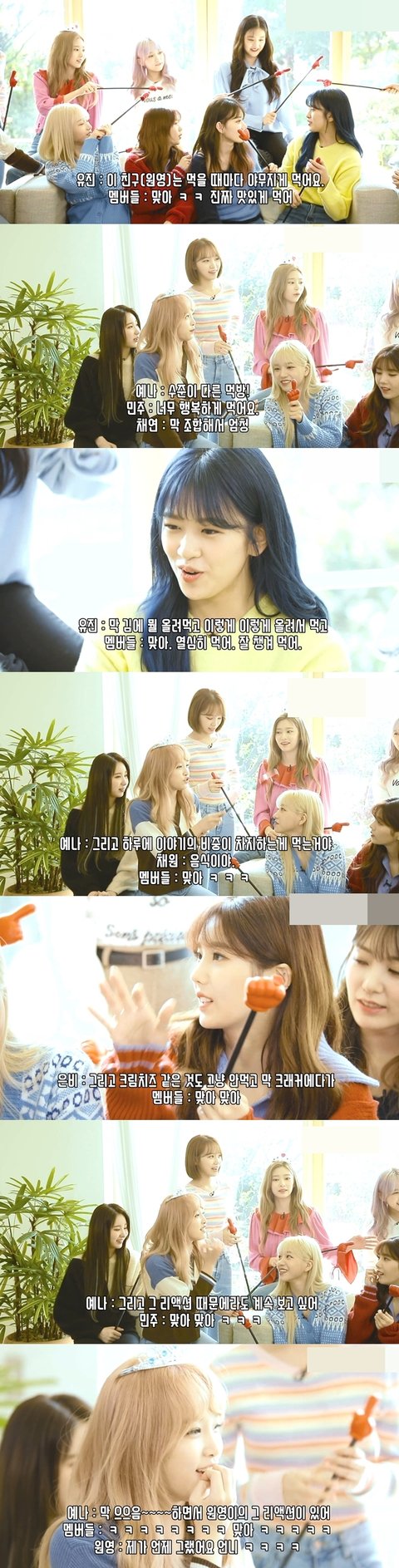 멤버들이 항상 일관적으로 이야기 하는게 먹을거를 너무 좋아해서 음식이야기만하고 음식이야기 할 때도 행복해한다하고 먹을 때도 맛있게 열심히 먹는다는 이야기임